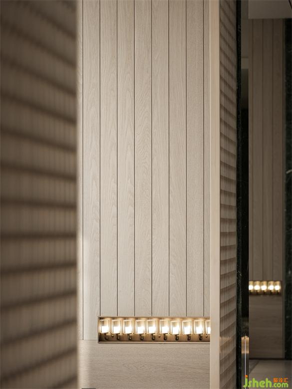 空間立面以精致的細(xì)節(jié)和豐富的層次,塑造視覺(jué)的聚焦點(diǎn)與內(nèi)部質(zhì)感的飽滿(mǎn)度:南京深業(yè)南灣上府營(yíng)銷(xiāo)中心設(shè)計(jì)運(yùn)用燈光的渲染形成有趣的肌理層面;木柵欄隔斷的變化,也賦予多元的表情。在質(zhì)樸中呈現(xiàn)精致質(zhì)感與氛圍。