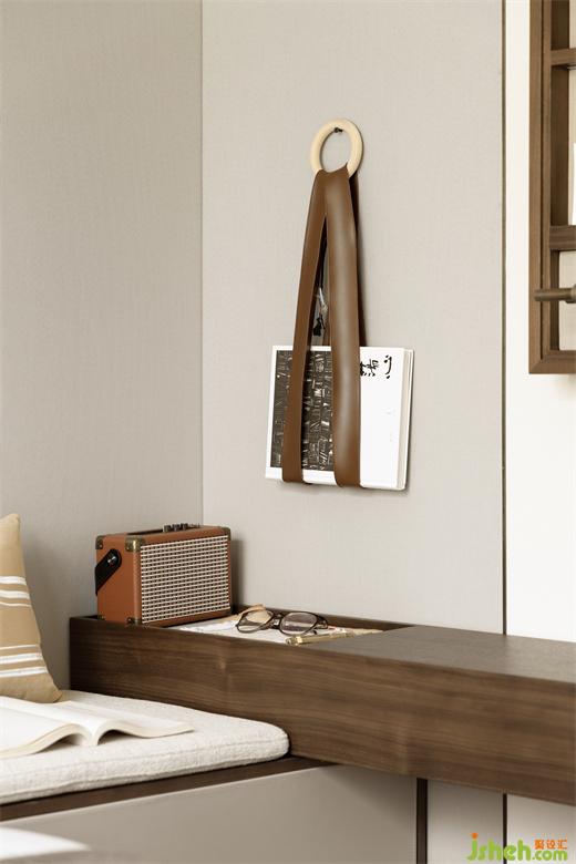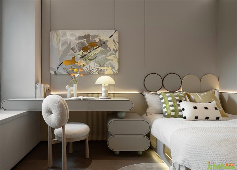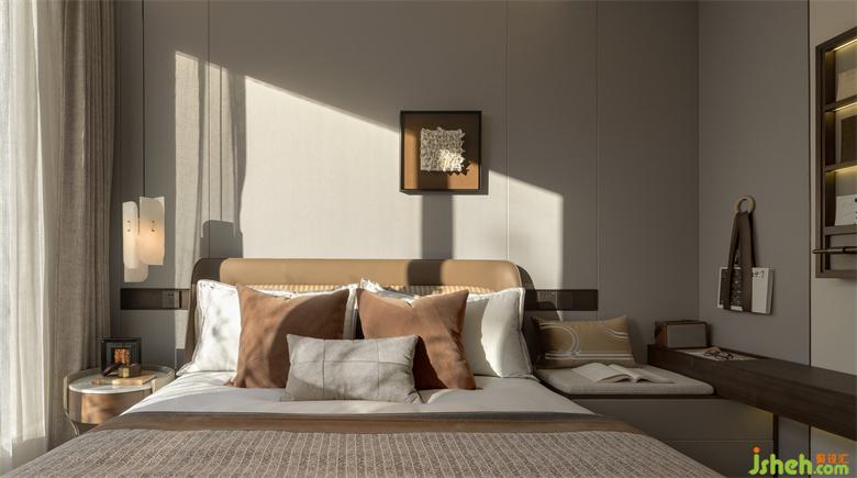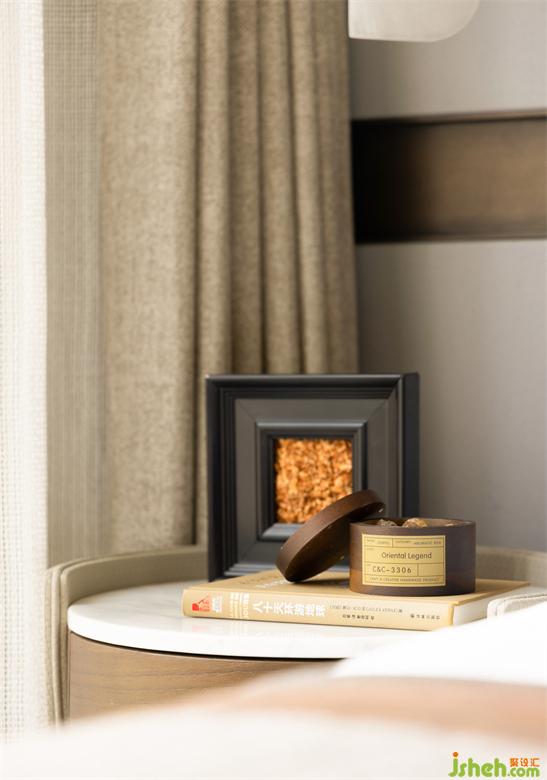 軟裝上選擇了木質(zhì)家具,床上的駝色皮革靠背及隨手放置讀物、香薰的小物件,廈門湖畔潤璟樣板房設計整體搭配像奶油一樣融進濃郁的焦糖奶茶,毫無違和感。