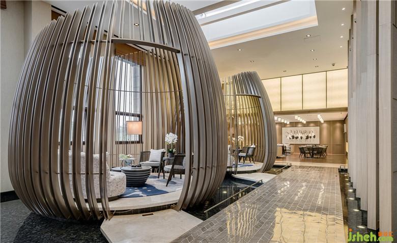 項(xiàng)目緊鄰西安曲江遺址公園,依托周邊豐富的旅游文化資源和人文傳統(tǒng),恢復(fù)性再造曲江南湖、曲江流飲、漢武泉、宜春苑、鳳凰池等歷史文化景觀,再現(xiàn)曲江地區(qū)“青林重復(fù),綠水彌漫”的山水人文格局,構(gòu)建集生態(tài)環(huán)境重建、觀光休閑娛樂、現(xiàn)代商務(wù)會(huì)展等功能為一體的綜合性城市生態(tài)和娛樂休閑區(qū)。設(shè)計(jì)師將“東方園林”的概念植入設(shè)計(jì),運(yùn)用自然景觀的設(shè)計(jì)元素,將室外的園林景觀融入室內(nèi)設(shè)計(jì)。