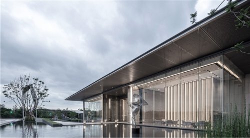 根據(jù)地理位置特點(diǎn),將室外東方園林的設(shè)計(jì)元素融入室內(nèi)空間,運(yùn)用東方園林的小橋、流水、荷葉、梅花樹等景致加入空間設(shè)計(jì),形成室內(nèi)造景,表達(dá)對(duì)自然文化景觀的致敬與傳承。
