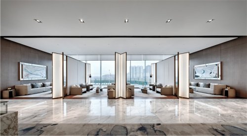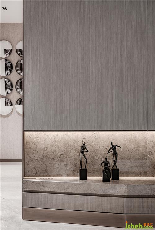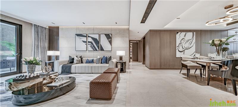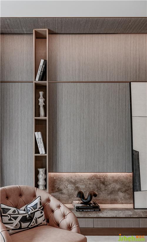 整個空間擯棄紛繁復(fù)雜的裝飾造型,以大面積的米色勾勒出空間墻面的底色,樣板房設(shè)計配以素雅的米色石材地面,再輔以深棕色作點(diǎn)綴,在柔和的自然光線下營造出靜謐閑適的氣質(zhì)。
