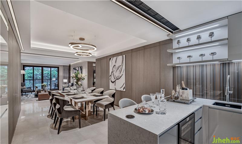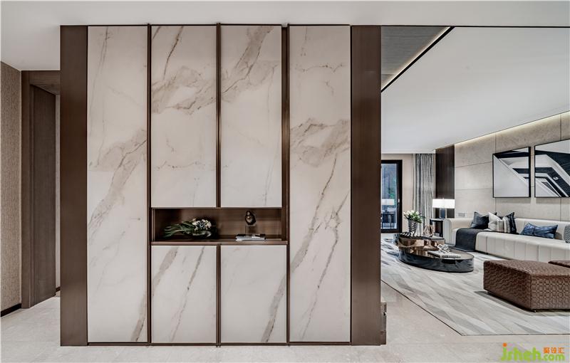獨(dú)立衛(wèi)生間,墻面與地面由同款石材一體而成,深色材質(zhì)恰到好處的融合與均衡。雙臺盆樣板房設(shè)計,合理的規(guī)劃分割,完美實(shí)現(xiàn)功能與美感的結(jié)合。