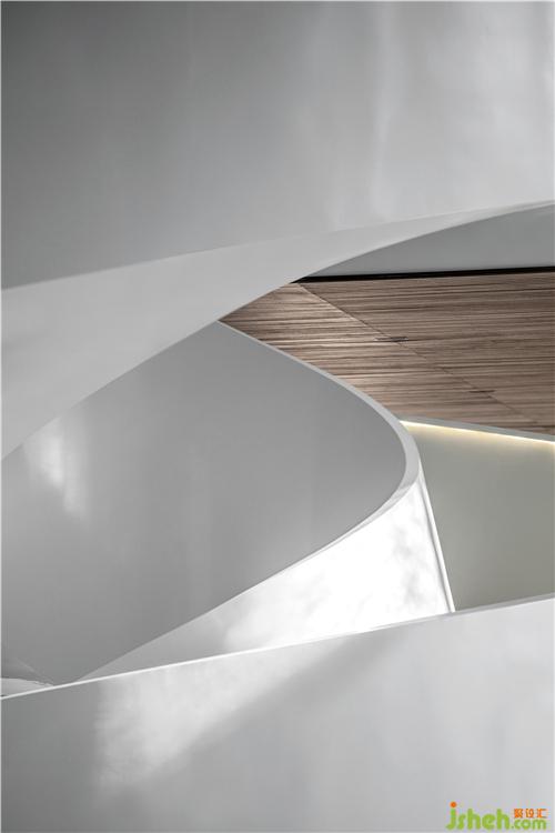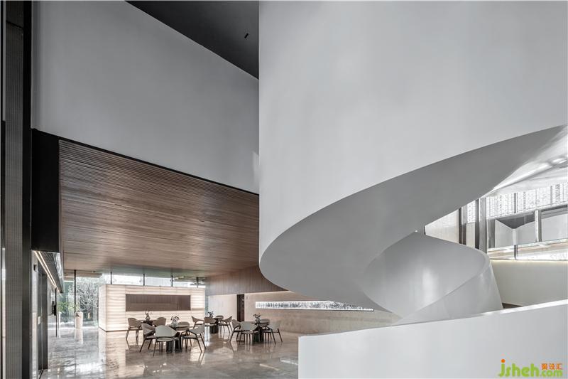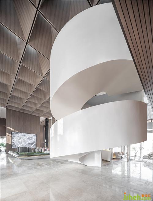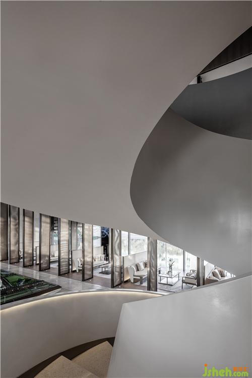 視線的阻隔將樓梯孤立于金華售樓處設(shè)計周圍環(huán)境