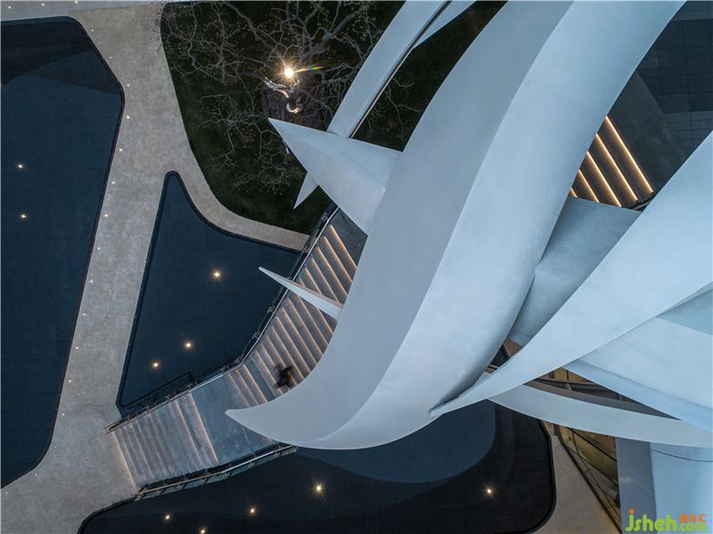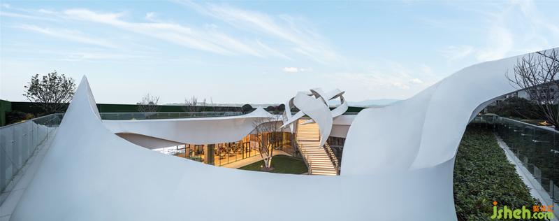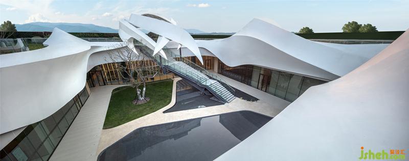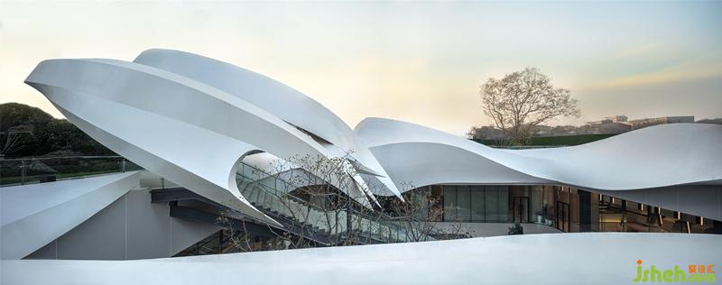 項(xiàng)目基地周圍群山環(huán)繞,場(chǎng)地區(qū)位優(yōu)越,有紫金山、紅山森林動(dòng)物園等自然景觀資源。南京售樓處設(shè)計(jì)師的設(shè)計(jì)策略是將地面景觀與地下建筑相結(jié)合,融入山形的概念,設(shè)計(jì)了一座地貌式的景觀建筑。