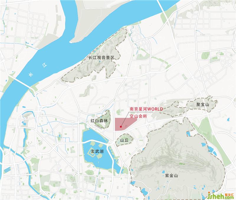 項(xiàng)目位于南京市玄武區(qū),基地周圍群山環(huán)繞,毗鄰玄武湖,遠(yuǎn)眺紫金山,周邊自然資源豐富,因而南京售樓處設(shè)計(jì)以南京獨(dú)特的城市基因?yàn)榛祝剿髯匀?、人文與城市的和諧共生。