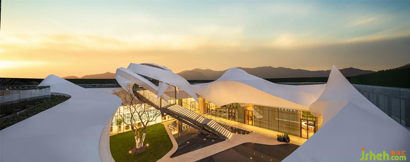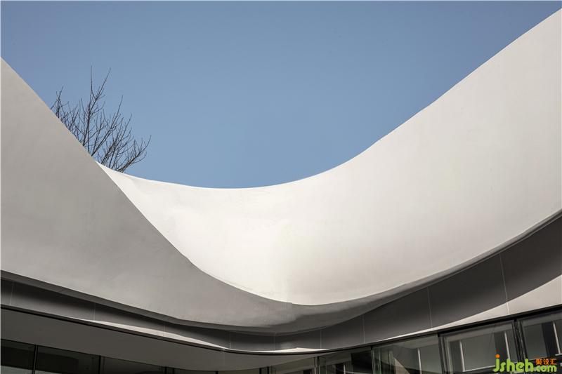 流動的屋面形成自然起伏的山巒形態(tài),線條有機流動,呼應了基地周圍山巒的柔美與飄逸南京售樓處設計,盡顯靈動。不管人身處庭院中或是地面,步移景異,此起彼伏。