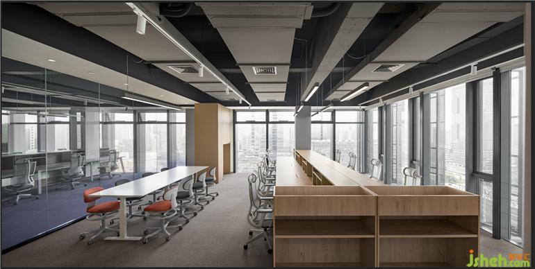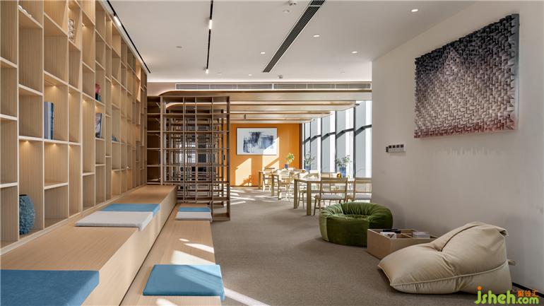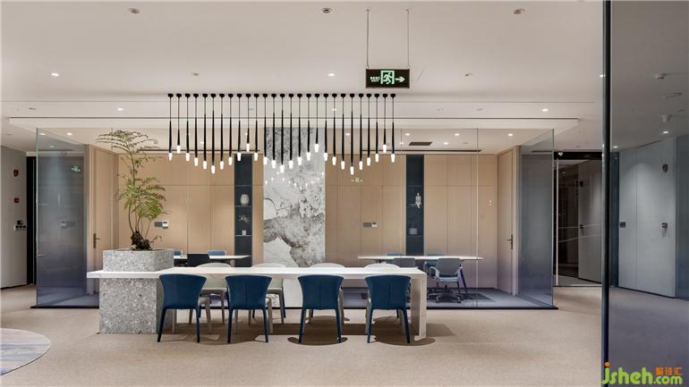 該方案整體的設(shè)計(jì)以原木設(shè)計(jì)搭配空間的黑白灰色調(diào)為主調(diào),辦公室設(shè)計(jì)整體的方案設(shè)計(jì)考慮到空間視野的開闊以及利用到室內(nèi)采光的設(shè)計(jì)效果。設(shè)計(jì)師通過(guò)簡(jiǎn)約的設(shè)計(jì)手法運(yùn)用,營(yíng)造出嚴(yán)謹(jǐn)開放、靈活穩(wěn)重的多維可能,隨著空間的明暗律動(dòng)延綿起伏。拋棄一些繁瑣的設(shè)計(jì)表象,還原空間最真實(shí)的目的表達(dá),一些局部的公共空間以弧形的形式的布局,外立面采用了藍(lán)色玻璃漸變的隔斷設(shè)計(jì),暖色條頂燈隨性進(jìn)一步呈現(xiàn)室內(nèi)舒適的辦公氛圍。在整體的環(huán)境中設(shè)計(jì)了一處閱讀處,階梯式分布不規(guī)則的跳色坐墊設(shè)計(jì)打破常有的生硬的閱讀空間,同時(shí)在整體的辦公空間中增添了很多綠植,營(yíng)造更為舒朗的辦公工作棲居,綠植與原木風(fēng)暖色的相結(jié)合給予人與空間更自由的呼吸和辦公空間。