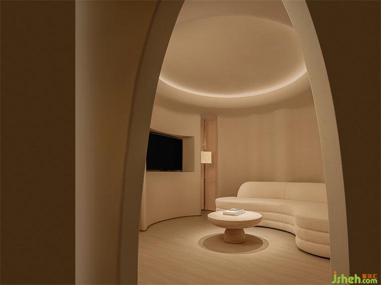 在禾縵肌研美學(xué)中心,熊貓NANA無意復(fù)刻自然中的優(yōu)美,而是期待以一種有機、自然的設(shè)計語言勾勒出禾縵品牌的表達(dá)“點亮肌膚時刻”,幫人們找到心靈的憩息之所,喚醒美好自己的芳香療法療愈空間。