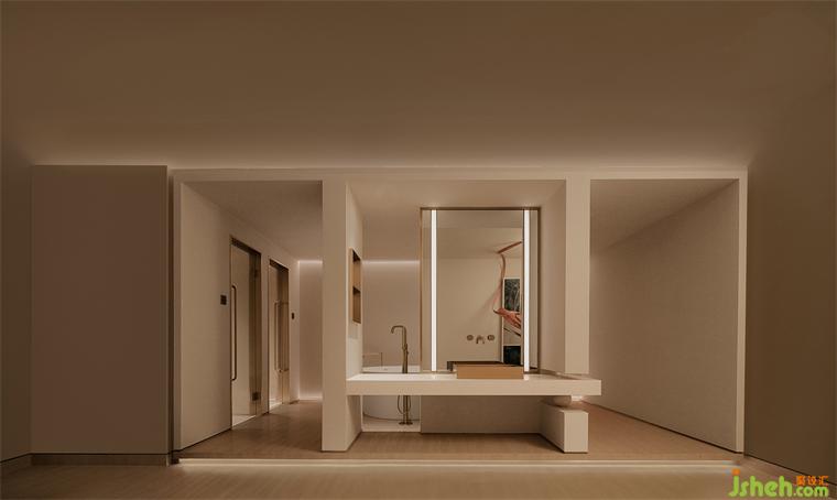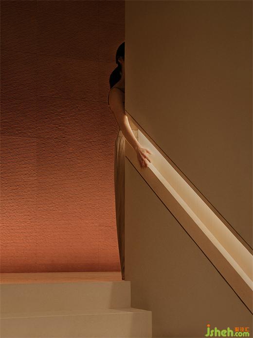 美學(xué)中心設(shè)計如同空間的自然過渡,在燈光設(shè)計方面,熊貓NANA沒有粗暴直接地點亮空間某一處,而是以一種內(nèi)斂的無主燈方式指引著人們的視覺,以線替點,讓燈光作為更整體的形式描繪空間的曼妙身姿。
