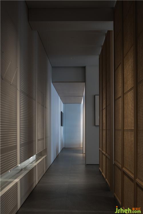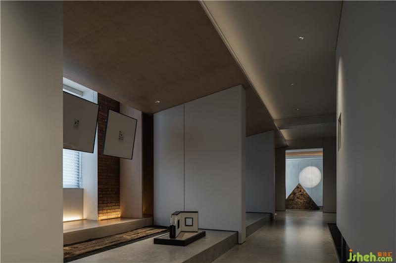 然而,相較于對(duì)工藝美學(xué)館的期待與訴求,建筑毛胚尺度并不理想。它坐落于一棟規(guī)矩的建材辦公樓里,一條細(xì)長(zhǎng)的走廊串連著多個(gè)單間,由單間組合而成的空間形態(tài)極其狹長(zhǎng),如何擺脫中規(guī)中矩的布局,將多維的體驗(yàn)和感知有機(jī)整合于受限的窠臼之中,成了設(shè)計(jì)的重點(diǎn)。
