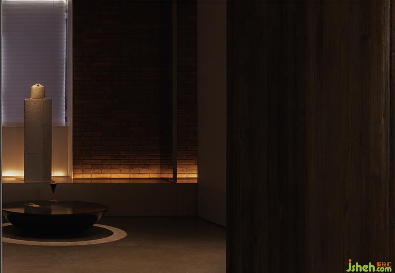 展廳背景是一面新砌磚墻,與古法土磚墻遙相呼應(yīng)。新技術(shù)與老形態(tài)共存的意義在于傳達(dá)主理人“尊古而不泥古,展廳裝修設(shè)計(jì)創(chuàng)新而不忘古”的態(tài)度,將傳統(tǒng)技藝中一些似乎被忽視、遺忘的細(xì)節(jié)重新?lián)炱?、淬煉,使其煥發(fā)新生。此外,工藝滌故更新,我們借施工過程中最基礎(chǔ)的一環(huán)體現(xiàn)主理人們的匠人情懷,這種不炫技的底氣不僅來自夯實(shí)的技藝基礎(chǔ),也源自他們內(nèi)心的文化自信。
