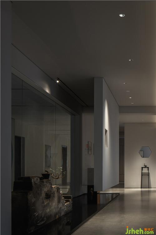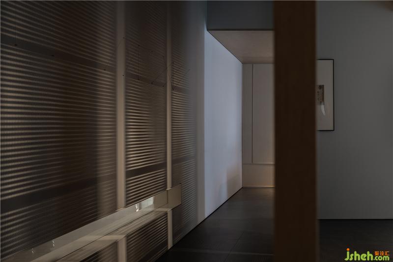 原毛胚結(jié)構(gòu)中,一根樓層消防主管道貫穿空間軸線,為了不影響層高與空間體驗(yàn)感,從門廳至茶室引入了屋檐概念,利用當(dāng)下的技藝呈現(xiàn)傳統(tǒng)園林中“屋檐”、“廊”的韻味,巧妙地解決了建筑規(guī)范和層高問題。