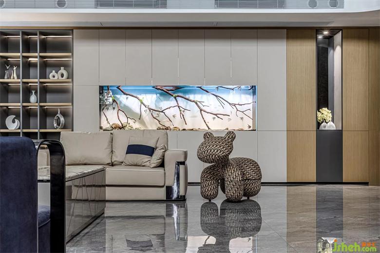 潘多拉巖板連紋電視背景墻與整面通體博古架,強(qiáng)調(diào)設(shè)計(jì)的統(tǒng)一性和完整性,讓室內(nèi)室外、動(dòng)與靜互動(dòng)達(dá)到一個(gè)巧妙的平衡 —— 以極簡(jiǎn)來(lái)映襯繁華,構(gòu)筑一個(gè)自然與雅奢融合的空間格調(diào)。