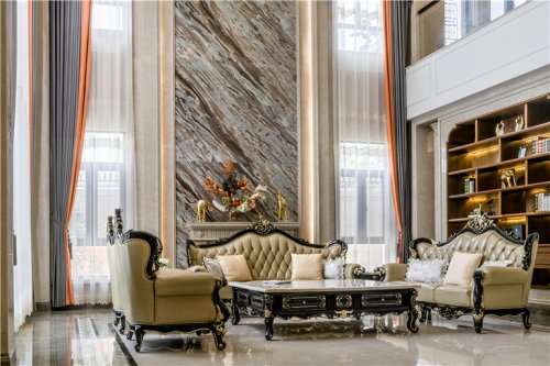 7米挑高奢闊橫廳,270°盡攬私家庭院盛景。別墅裝修設(shè)計(jì)以光為引,暖色系天然大理石為主色調(diào)進(jìn)行鋪陳,氣質(zhì)溫潤(rùn)、天然紋理純凈無(wú)暇,整體大氣而流暢,恰如其分的營(yíng)造出成熟穩(wěn)重又不失舒適雅致的空間。