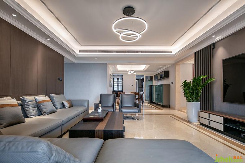 恒裕濱城在倡導(dǎo)當(dāng)代品質(zhì)生活與人文精神、自然生態(tài)相結(jié)合的精神理念上,為保證每個(gè)戶型都擁有極致景觀視野,空間結(jié)構(gòu)采用了L型布局來實(shí)現(xiàn)景觀無遮擋,南北通透,視野最大化,讓居住者都具有絕佳的觀賞角度,園景,海景,從容盡享,自成天地。在本戶型的設(shè)計(jì)理念中,不僅要在原建筑的基礎(chǔ)上,保證天然景觀與室內(nèi)的融合,也要結(jié)合業(yè)主夢(mèng)想中關(guān)于家的溫暖與優(yōu)雅。因此,設(shè)計(jì)師在確定現(xiàn)代雅奢這樣的風(fēng)格后,根據(jù)項(xiàng)目戶型結(jié)構(gòu)和原本自有的精裝修模式,旨在用文化碰撞時(shí)尚,用細(xì)節(jié)體現(xiàn)儒雅尊貴,讓藝術(shù)氛圍交織生活空間,融合人文美、自然妙趣、現(xiàn)代生活的方式,演繹不焦不躁、不凡不靡、安然若素的簡(jiǎn)約休閑宜居空間。