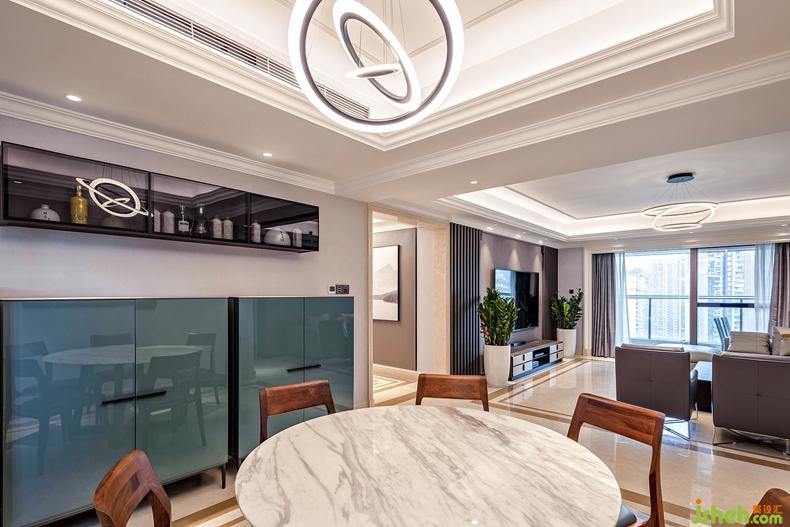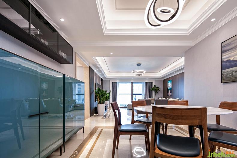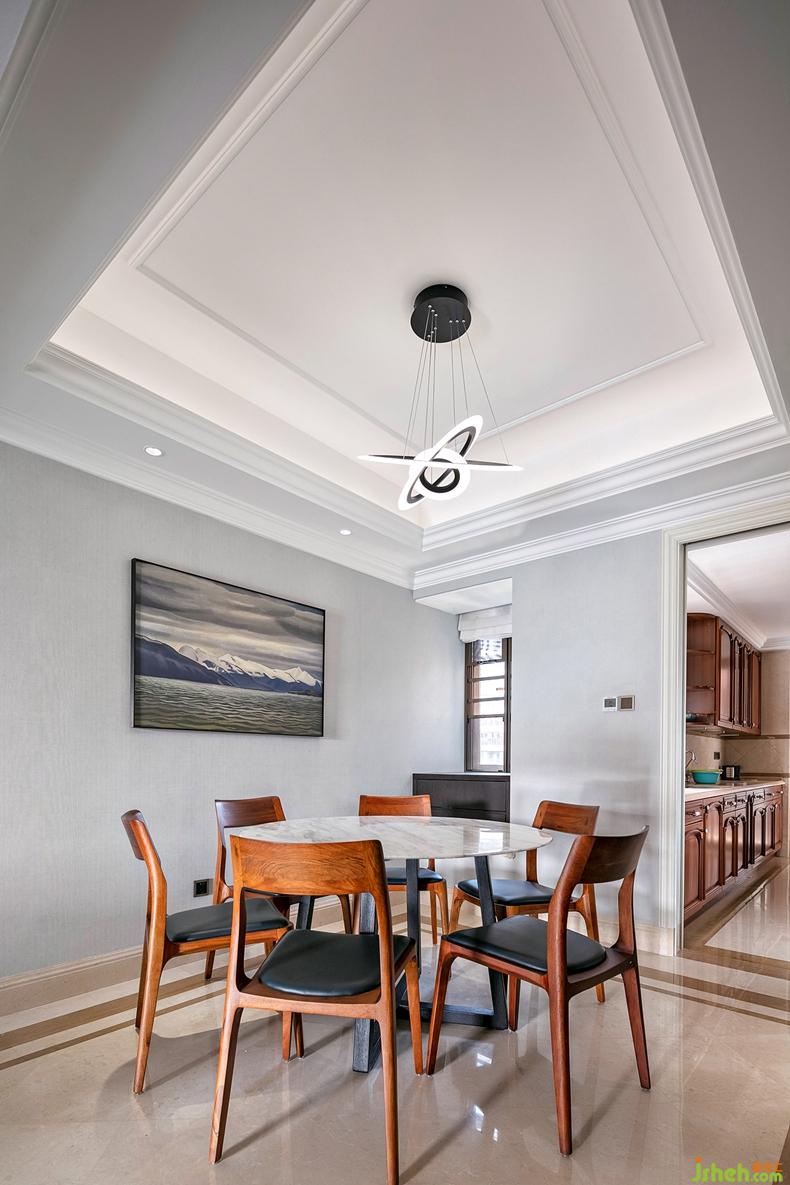 即便在有限的格局里,餐廳的設(shè)計(jì)依然秉持簡約大方、溫潤而雅的格調(diào),室內(nèi)設(shè)計(jì)師用燈光、鏡面柜的設(shè)計(jì),增加空間層次,體現(xiàn)家的明朗和熙、純粹而溫馨。細(xì)節(jié)見品質(zhì)的北歐風(fēng)桌椅、獨(dú)特的燈飾,包括無垠風(fēng)光的陳設(shè)掛畫作選擇,也都頗有大自然的輕盈感,令人放松沉醉,享受這一刻的寧靜與祥和。