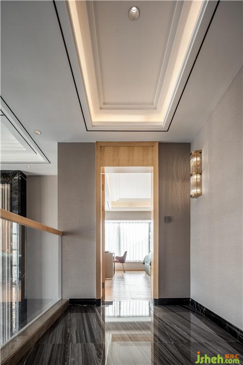 輕扶而上至二樓回馬廊扶手溫潤的設(shè)計手感令人非常舒適,其尺度是根據(jù)人體工程學(xué)定制的,完美闡述設(shè)計之美,在于匠心品質(zhì),更在于細(xì)節(jié)。另外每間臥室的房門設(shè)計,也取“頂天立地”之意,延續(xù)自然的根基。