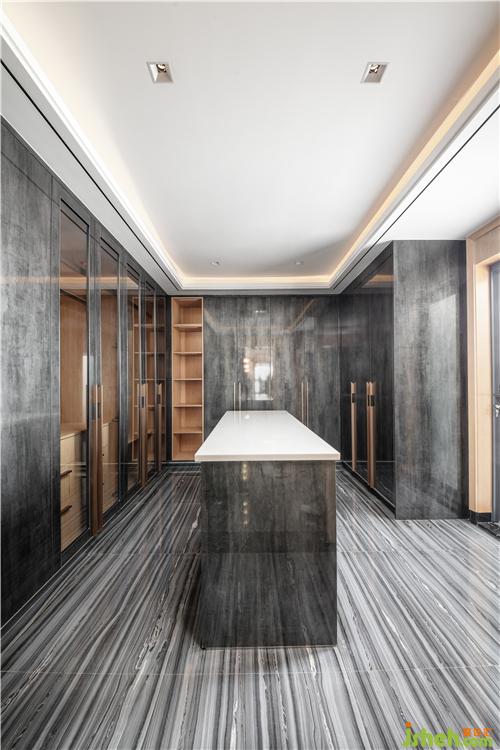 空間中除了色彩、質(zhì)感、紋理構(gòu)成的自然之境,還有業(yè)主自己收藏的藝術(shù)品根雕,以及意大利進口真皮皮雕手工制作了一幅高達(dá)6米的繁花似錦圖,對應(yīng)主題概念,相融相棲,意蘊深遠(yuǎn),高級而美,時尚而清雅,生動地詮釋和諧真義,