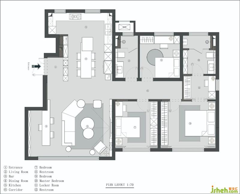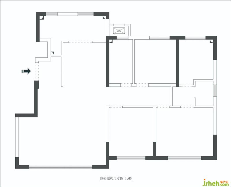 本案原始戶型是一套中規(guī)中矩的精裝房,自身結(jié)構(gòu)相對適合。但對于一個四口之家來說,居住空間就顯得過于緊湊,且儲物功能不足、空間缺乏交流感天津裝修設(shè)計。