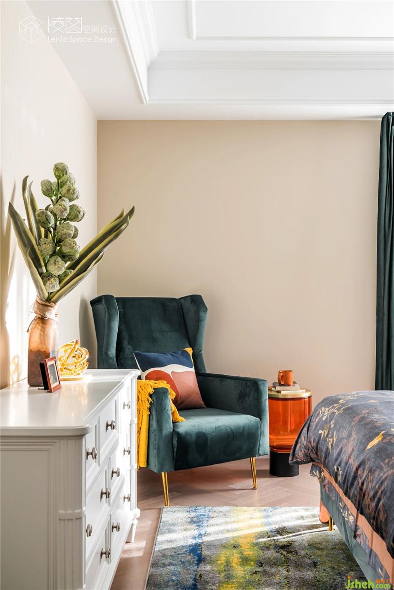 主臥的背景墻紙靈感來(lái)源于森林,