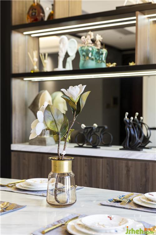 主材:進口木飾面板+白色烤漆、進口巖板、銀鏡、無指紋拉絲不銹鋼、大理石