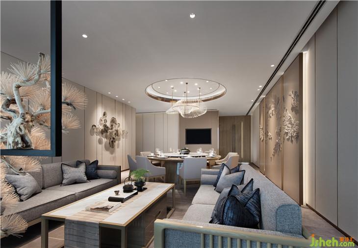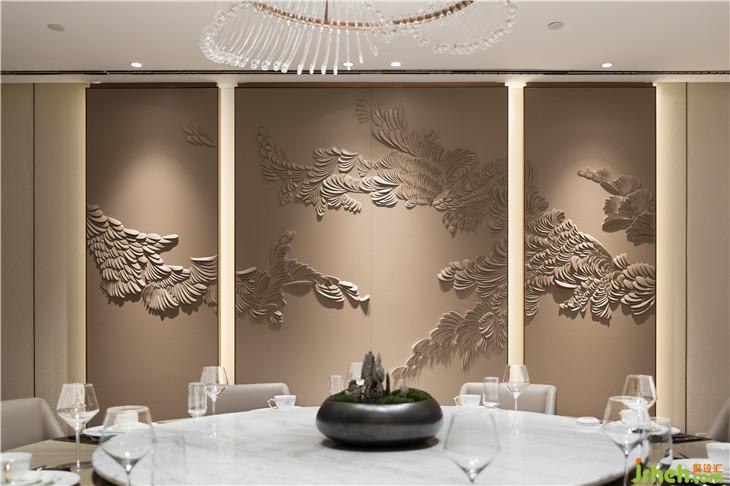 鑒于地處濱海城市深圳的核心區(qū),我們借用古典文學(xué)中曹操一首《觀滄海》為設(shè)計(jì)靈感源泉,結(jié)合騰訊科技企業(yè)愿景為設(shè)計(jì)依托,表達(dá)一種氣勢(shì)磅礴,吞吐日月,包羅星漢的氣概??偛蛷d和諧的劃分為大小包房?jī)蓚€(gè)部分。大包房的設(shè)計(jì)體現(xiàn)了一種可供參考的尊貴高雅的餐飲方式與精神追求。