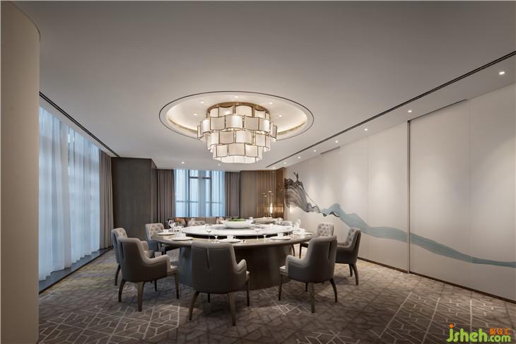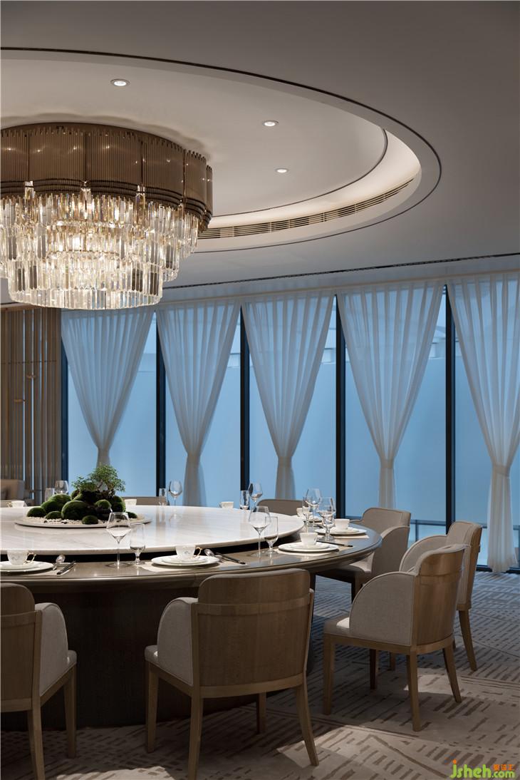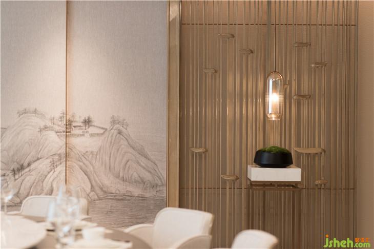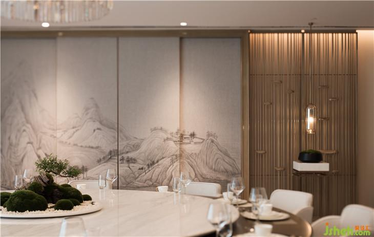屏風(fēng)的錯(cuò)落隨意的布置尤如海面上的漁船及風(fēng)帆,寓意乘勢(shì)揚(yáng)帆而上鑄就輝煌。吊燈的元素來自項(xiàng)目的地理位置引發(fā)的設(shè)計(jì)構(gòu)思,通過以現(xiàn)代復(fù)合材料進(jìn)行藝術(shù)手法塑造成波浪,追求水波蕩漾的自然感,金屬質(zhì)感邊框做成波光粼粼的點(diǎn)綴。展現(xiàn)設(shè)計(jì)者對(duì)自然及力量的一種追求。