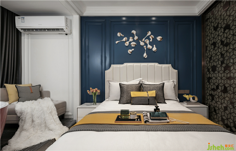 “打造摩登新潮的空間,不僅需要視覺上和諧,還需要考慮空間宏觀架構(gòu),才能更深刻賦予它“人性化”的功能?!避浹b沿襲硬裝的基調(diào),加入大膽的色彩及配飾,創(chuàng)造鮮活靈動的空間,以此美化生活。