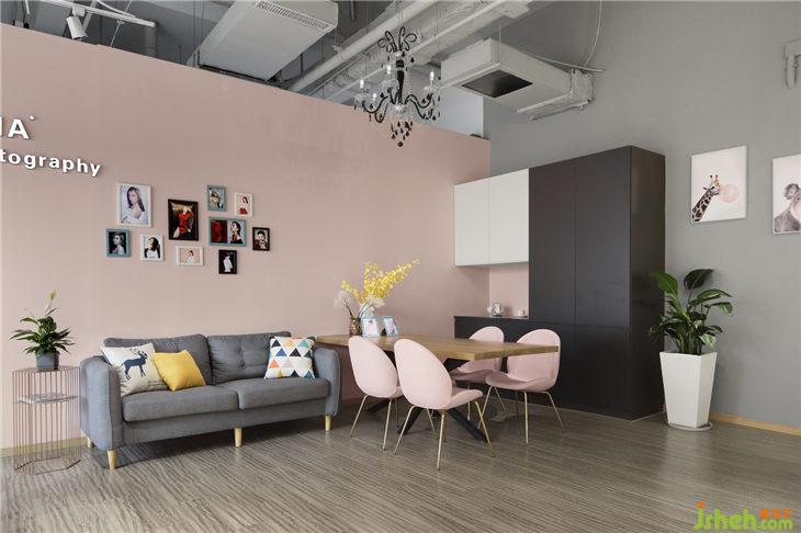 一個搞攝影的男生,客戶群體以愛美的女生為主,這樣一個空間,希望簡潔干練、甜美而富有力量;以退為進的方式處理入戶大門,室內通過幾個塊面劃分引入人的動線;保留原始吊頂面,塊面區(qū)域的對比,色調的對比突出空間感,簡潔而力量感。