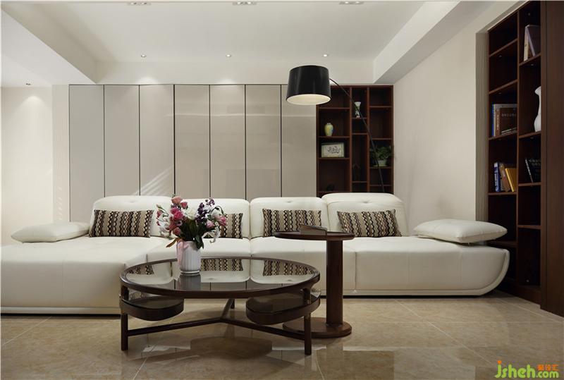 利用客廳西面墻凸出的承重柱做一組嵌入式裝飾柜,提供儲物功能;