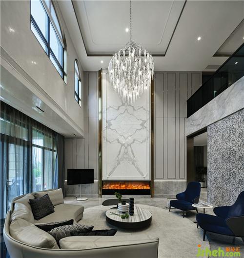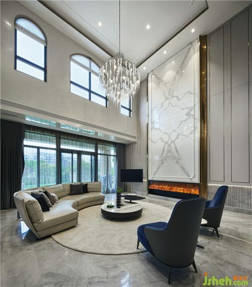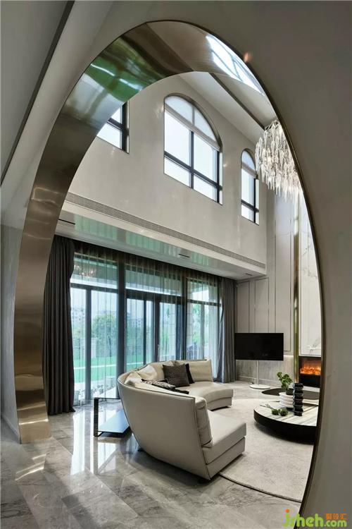 首層作為整個(gè)空間的首要視覺(jué)傳達(dá)接觸點(diǎn),人文理性和情感的比例排布,別墅裝飾運(yùn)用石材、金屬、墻紙等不同材質(zhì),縱向拉伸空間高度,橫向交織功能隔區(qū),與9米高輕盈大氣的中空設(shè)計(jì),在輕質(zhì)、簡(jiǎn)奢的空白處中,衍生出自然的萬(wàn)千形態(tài),烘托舒適自然、時(shí)尚別致的氛圍。