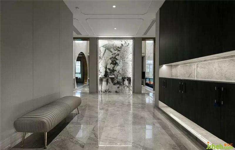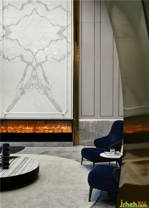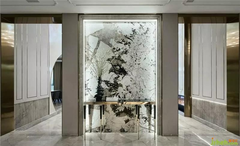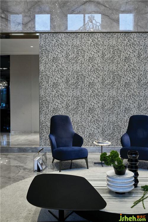迎面寫(xiě)意抽象的大理石壁畫(huà)使空間放慢了呼吸,留出想象。