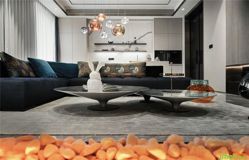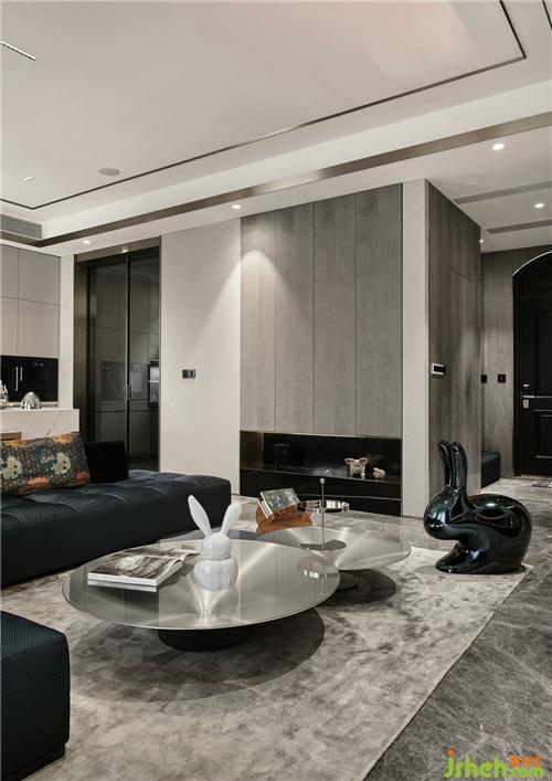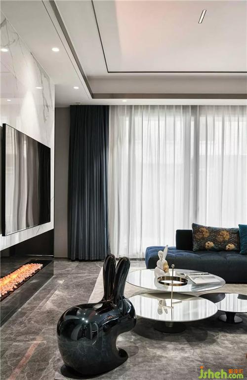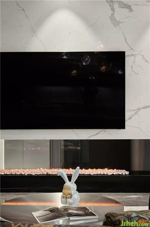 懸浮的電視墻設計,增加了空間的視覺延續(xù)性;真火壁爐的星火光芒、羅奇堡的沙發(fā)和茶幾、稀奇藝術品的擺件,整個空間優(yōu)雅時尚,彰顯著主人對生活的態(tài)度。