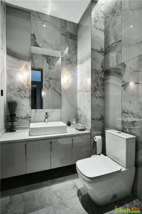老人房配套的獨立衛(wèi)生間和起居室延續(xù)臥室基調(diào),水墨畫的背景,寧靜而高雅,“人”字型挑高屋頂,空間感更強,也進一步映射出東方氣息與現(xiàn)代生活品質(zhì)。