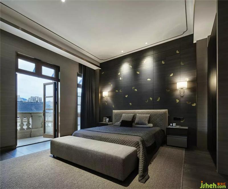 老人房以“高山流水”為主題,暖灰調(diào)的色彩舒適靜謐,墻面不銹鋼造型的延續(xù),在傳統(tǒng)的中式意境中注入現(xiàn)代時尚元素,整個色調(diào)沉穩(wěn)雅趣,別墅裝飾符合老年人的審美情趣。