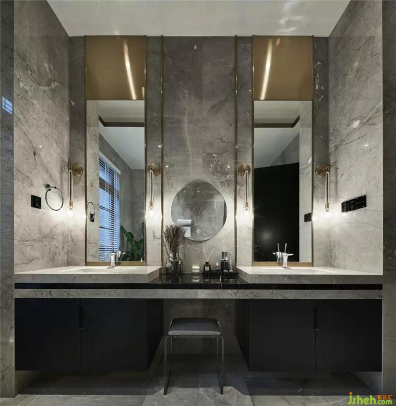 黑白灰系的主衛(wèi),恰到好處的優(yōu)雅質(zhì)感,瓶藝杯盞,俯拾即是,溫馨生動。