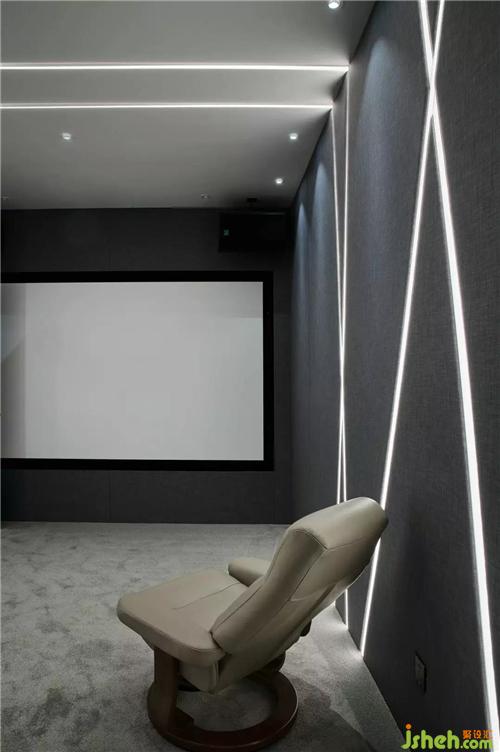 影音室、水吧區(qū)做為以休閑為主的功能空間,被設置在了負一層,兼具隔音性和私密性,靜享生活的閑暇時光,安然自得。