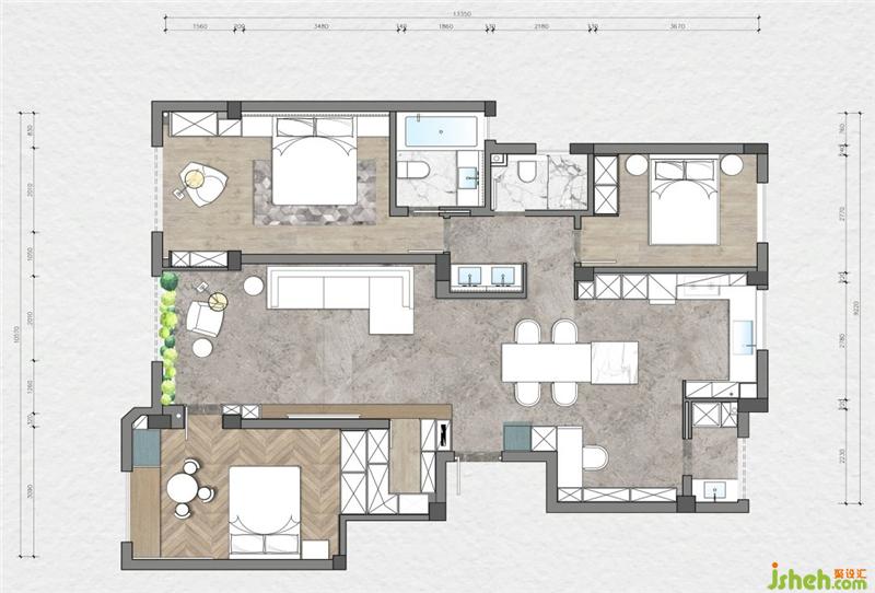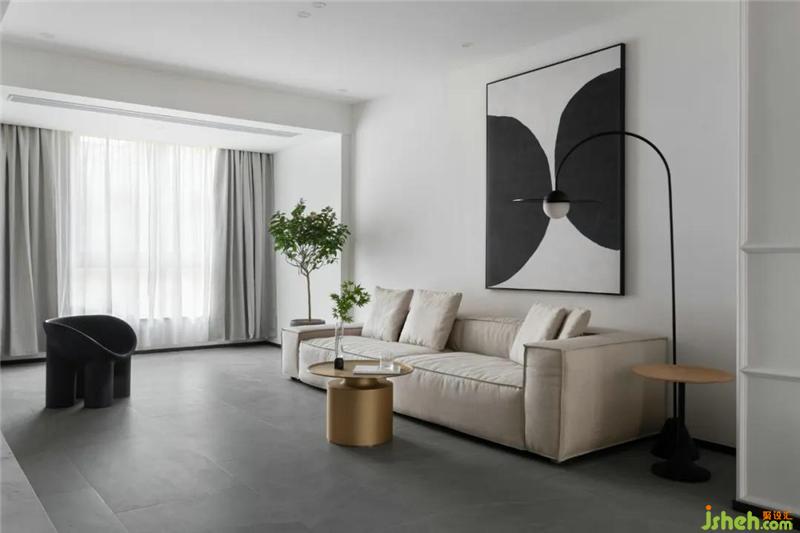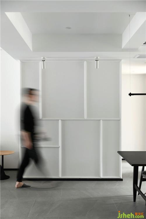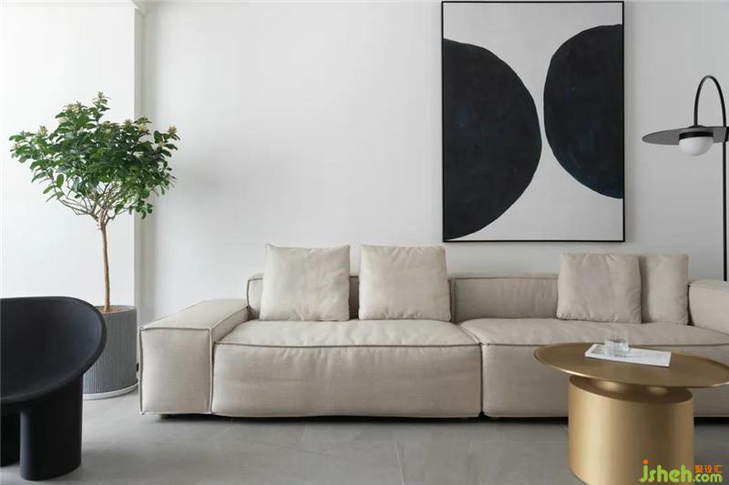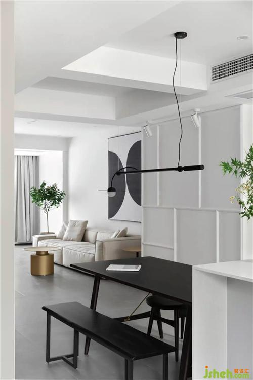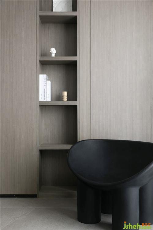 客戶是一對年輕的夫婦,杭州裝修設計師在空間上把陽臺合并到客廳拓展視覺感受,優(yōu)化客廳會客功能,生活陽臺更改到北面重新規(guī)劃后的洗衣房晾曬一體,功能獨立,動線互不打擾。