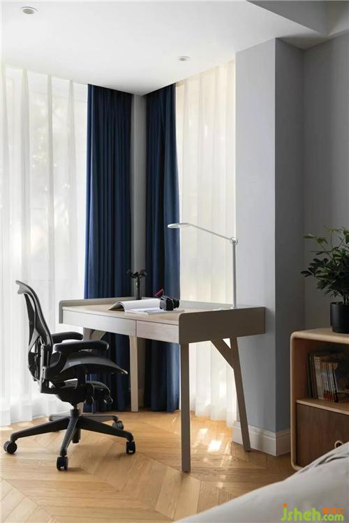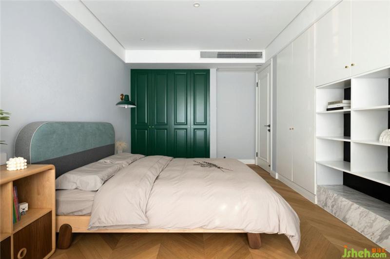 次臥室淺淺的莫蘭迪灰墻面加墨綠的柜子和飾品,無(wú)敵復(fù)古雅致,原木地板在陽(yáng)光映射之下更是溫暖有加,每一處細(xì)心挑選的擺件都充滿趣味。