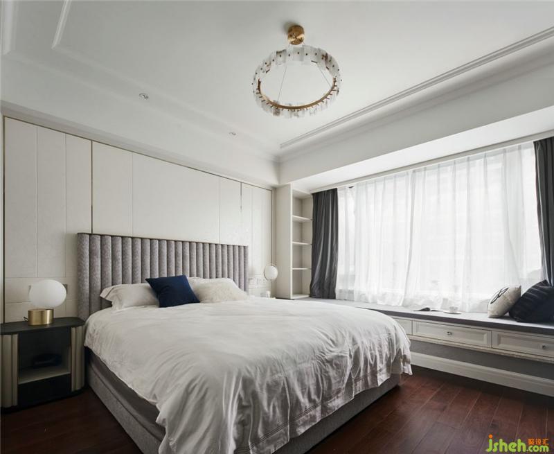 主臥室在保留原硬裝基礎(chǔ)之上,以家具和軟裝配飾充分體現(xiàn)空間的雅致和舒適感,床靠背的紋路呼應(yīng)墻面造型,提升空間的視覺(jué)感,飄窗的合理使用,杭州裝修設(shè)計(jì)給主人增加了一個(gè)放松休閑的好地方。