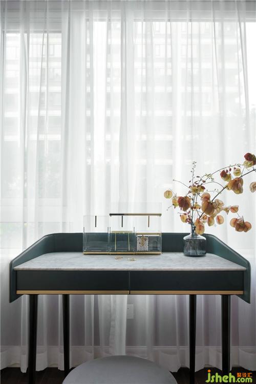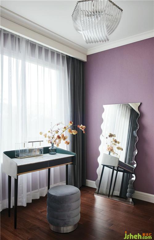 香芋紫的墻面充滿(mǎn)了女性的柔美典雅,古典的梳妝臺(tái),景美的小花,點(diǎn)點(diǎn)滴滴都在敘述這個(gè)家女主人最美的姿態(tài)。
