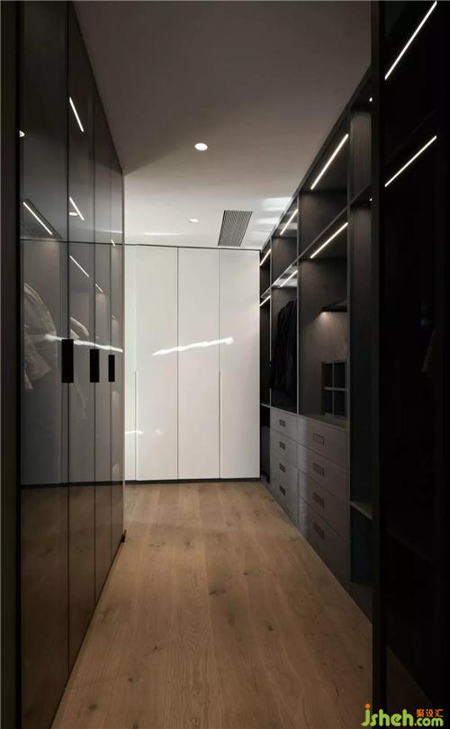 主臥室整面的落地窗將屋外的自然美景與充沛的陽光帶入室內(nèi),從臨窗的浴缸到散落的坐墊,無不釋放著自由與放松的氣息,灰色的地毯,棕色的窗簾,當(dāng)夜晚來臨將窗簾拉上,便能營(yíng)造出靜謐又安寧的睡眠環(huán)境。