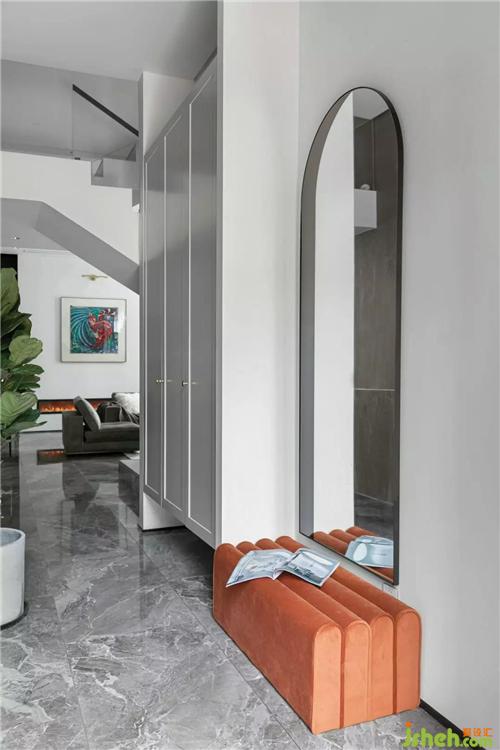 轉(zhuǎn)過客廳,灰色石頭上雕刻一體的踏步,白色的轉(zhuǎn)折樓梯,裝飾空間的同時(shí),又引領(lǐng)著生活的幸福篇章繼續(xù)鋪展開來。