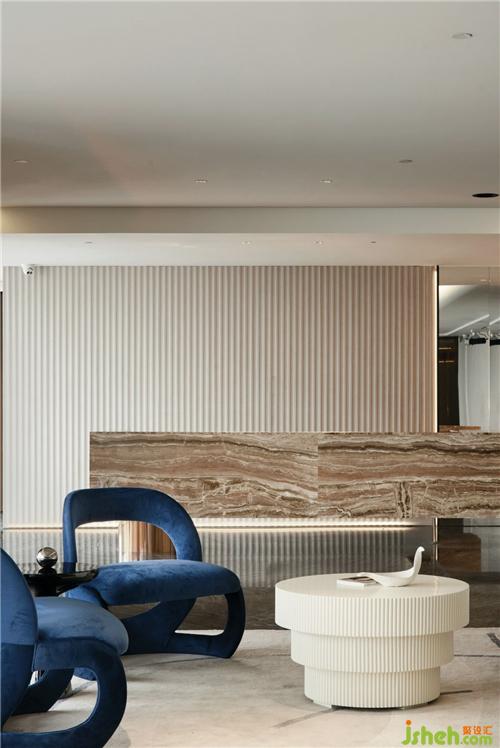 純凈的空間盡展典雅與潔凈,設(shè)計師采用簡潔干練的設(shè)計手法融合充滿藝術(shù)感的軟飾拉開空間的帷幕,充滿秩序的墻面與交錯的曲線灰玻構(gòu)成整體氛圍,更像是一個藝術(shù)的圣殿。