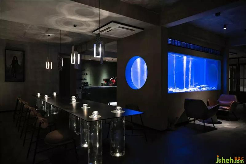 步入室內(nèi),首先映入眼簾的是一個魚缸,它有一個凄美的名字叫 “鯨落”,懂的人自然明白,一只鯨落的消失殆盡才有了現(xiàn)在的萬象平衡,透過魚缸,窗外的景色似乎和海底世界融為了一體。