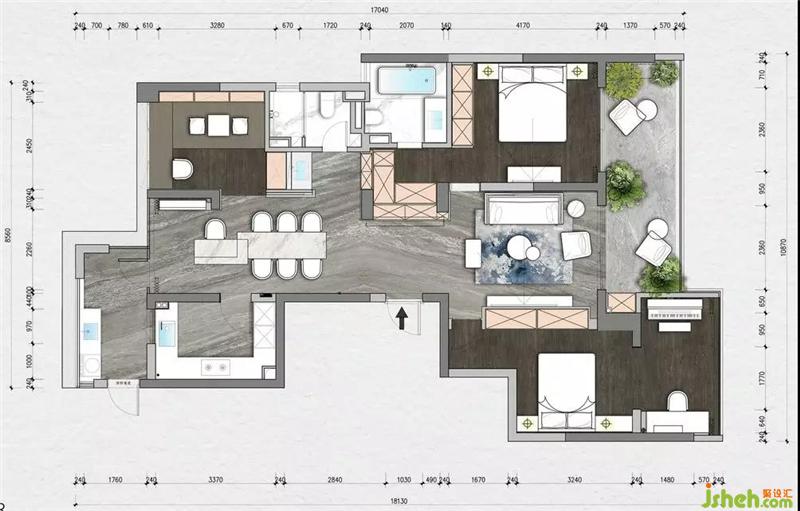 關(guān)于設(shè)計(jì):這是一個(gè)幸福的三口之家,小女兒在讀中學(xué),學(xué)業(yè)正重的時(shí)候,原始戶型是一個(gè)常規(guī)的三室,主人希望新房子里面除了好看的顏值,紹興裝修設(shè)計(jì)更能多一些實(shí)用性功能;設(shè)計(jì)師在幾番筆戰(zhàn)之后,定稿的方案不僅提高了空間的完整性,并且大大增加了居住的儲(chǔ)物功能。