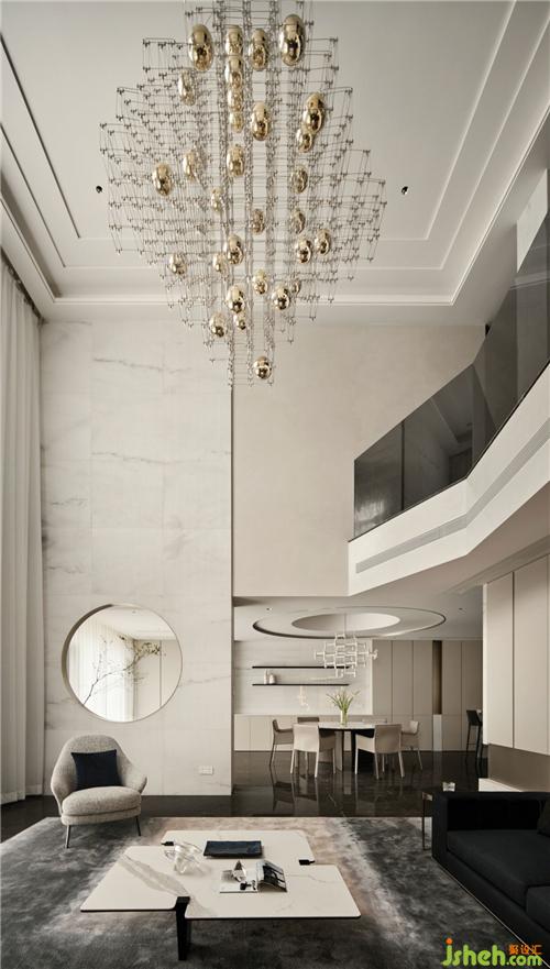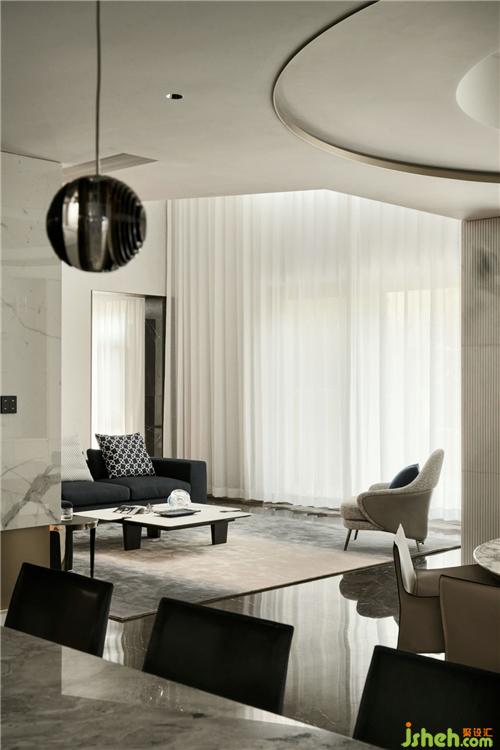 客廳小到擺件、抱枕,大到沙發(fā)、吊燈,無(wú)不給人一種奢華高貴國(guó)際范兒的感覺,設(shè)計(jì)師采用米蘭的現(xiàn)代極簡(jiǎn)風(fēng)格,極簡(jiǎn)精致而簡(jiǎn)約,同時(shí)透露著濃重的設(shè)計(jì)感。白色大理石也給這高貴的空間加上濃厚的一筆韻味。