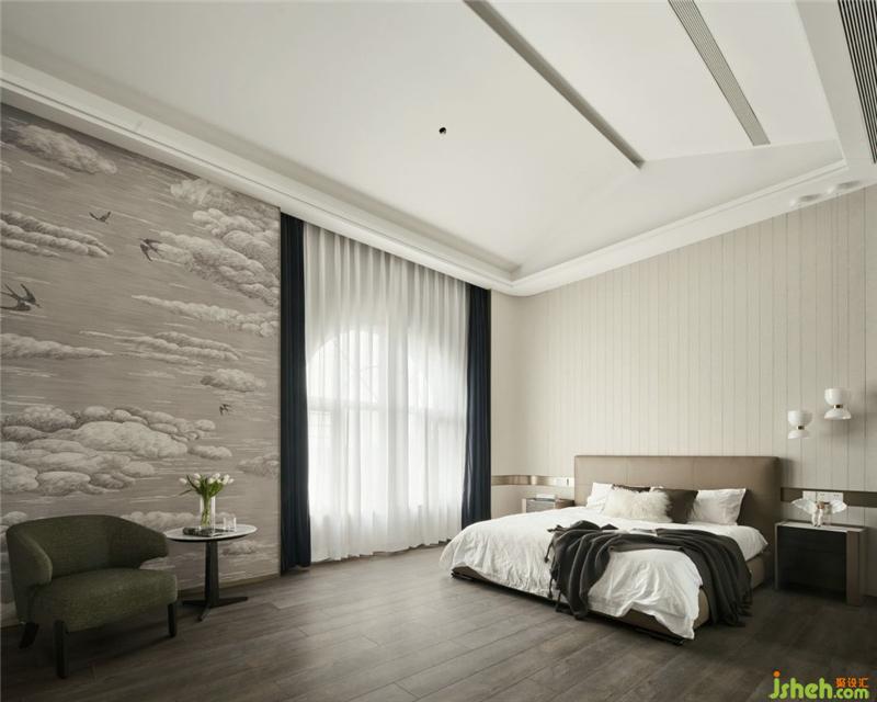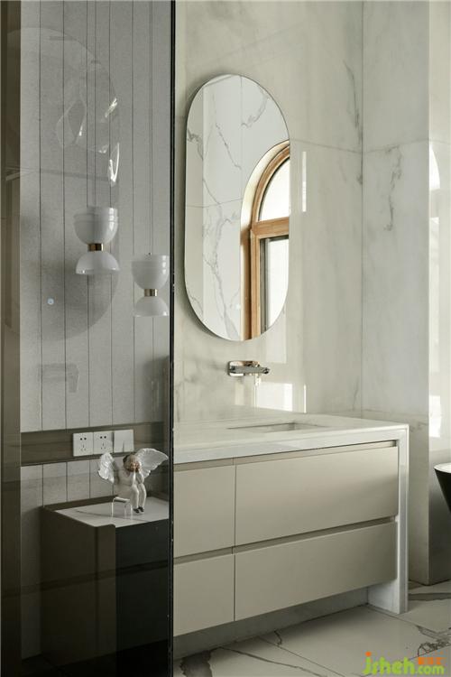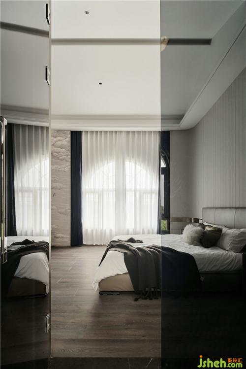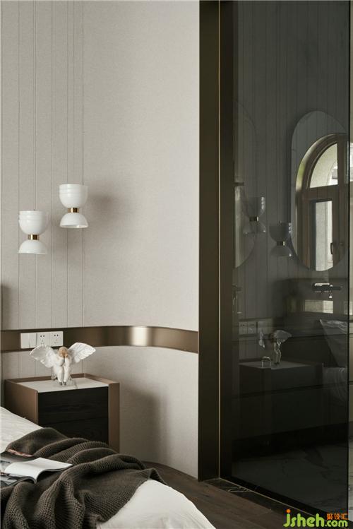 三樓整層都是主臥,樓梯前做了一個弧形裝飾,杭州別墅裝飾房內(nèi)一整面的鏡子使原本就大的房間更加霸氣,造型上的簡潔反之賦予材質(zhì)上的奢華。