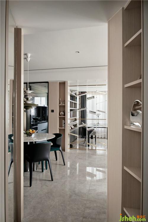 書房與客廳的結合甚是巧妙,使用玻璃成品金屬架作為兩個空間之間的隔斷,杭州裝修設計既有了空間的分割,同時也增加了客廳的美觀。