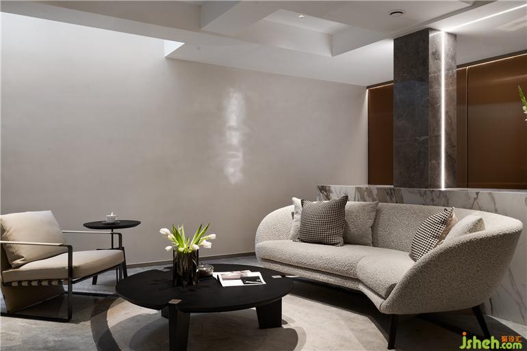 集觀影、休閑為一體,低調(diào)的白色布藝沙發(fā)中和著石材的硬度,別墅設(shè)計(jì)在線性光線的把控下,地下室多功能區(qū)呈現(xiàn)出包容與溫和的態(tài)度。